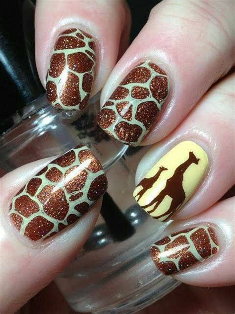 So as to add depth to your giraffe nails, use completely different shades of brown or black for the spots and stripes. You can too add a glittery topcoat.