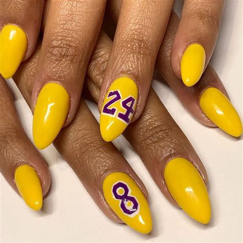 Kobe Bryant’s legacy is synonymous with the 5 NBA championships he earned with the Lakers. Pay tribute to those triumphs by incorporating the Larry O’Brien trophy into your nail artwork designs. You possibly can paint a mini trophy on every nail or create a extra elaborate design that includes a number of trophies to symbolize every championship.
