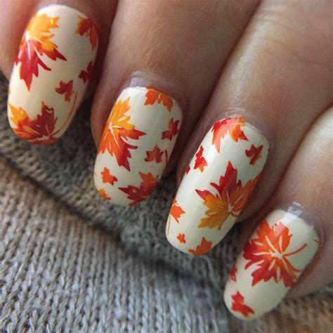 • Leaf stamping: Use a nail stamping plate with a fall leaf design to rapidly create intricate patterns.