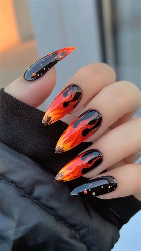 Capturing the essence of a flame’s dance is essential in flame nail designs. Artists masterfully create an phantasm of motion and stream by incorporating curved strains, jagged edges, and refined gradients. The result’s a nail artwork that appears to flicker and dance earlier than your very eyes.