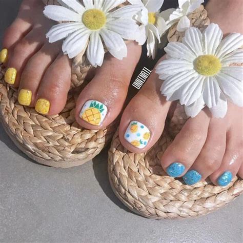 • Pineapple toenail designs may be created on each pure and synthetic nails. In case you have synthetic nails, remember to use a nail polish that’s appropriate with them.