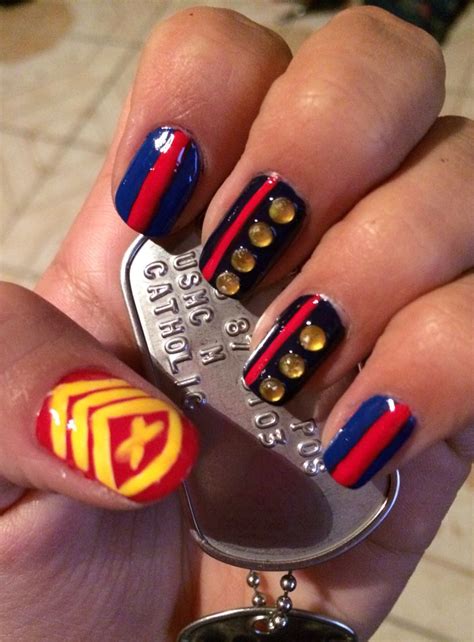 Incorporate the enduring purple, white, and blue of the American flag into your USMC nail designs. Paint miniature stars and stripes on accent nails or create a daring gradient impact, showcasing each your patriotism and your assist for our Marines.